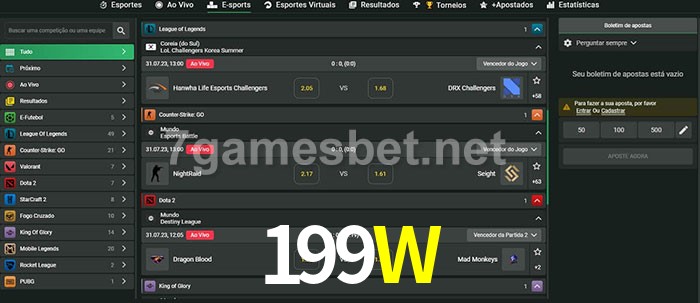 A aposta 199W oferece aos jogadores a experiência mais conveniente de apostas em eSports!